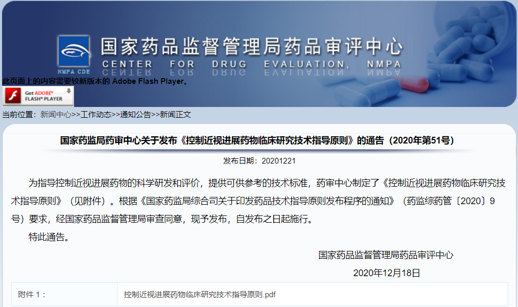 關(guān)于發(fā)布《控制近視進(jìn)展藥物臨床研究技術(shù)指導(dǎo)原則》的通告(2020年第51號)