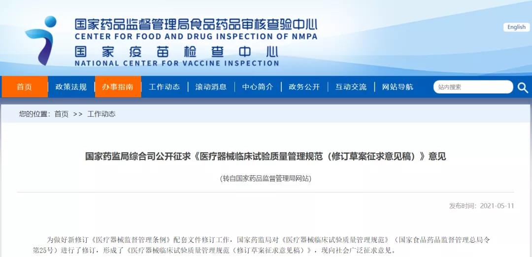國家藥監(jiān)局綜合司公開征求《醫(yī)療器械臨床試驗(yàn)質(zhì)量管理規(guī)范(修訂草案征求意見稿)》意見