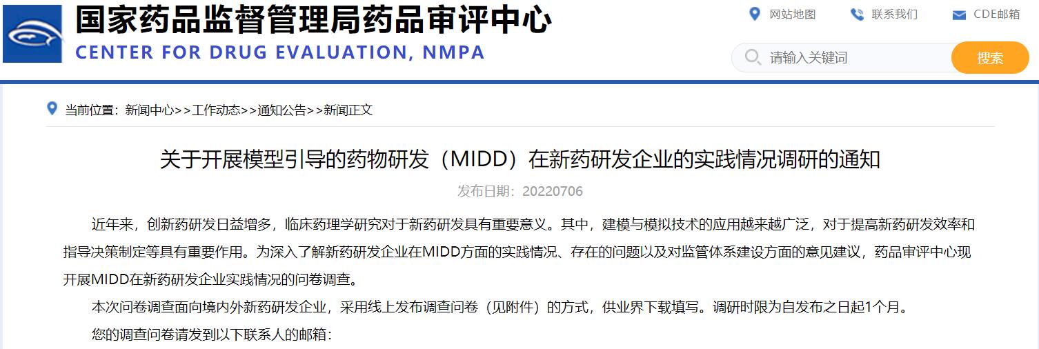 關(guān)于開展模型引導(dǎo)的藥物研發(fā)(MIDD)在新藥研發(fā)企業(yè)的實(shí)踐情況調(diào)研的通知