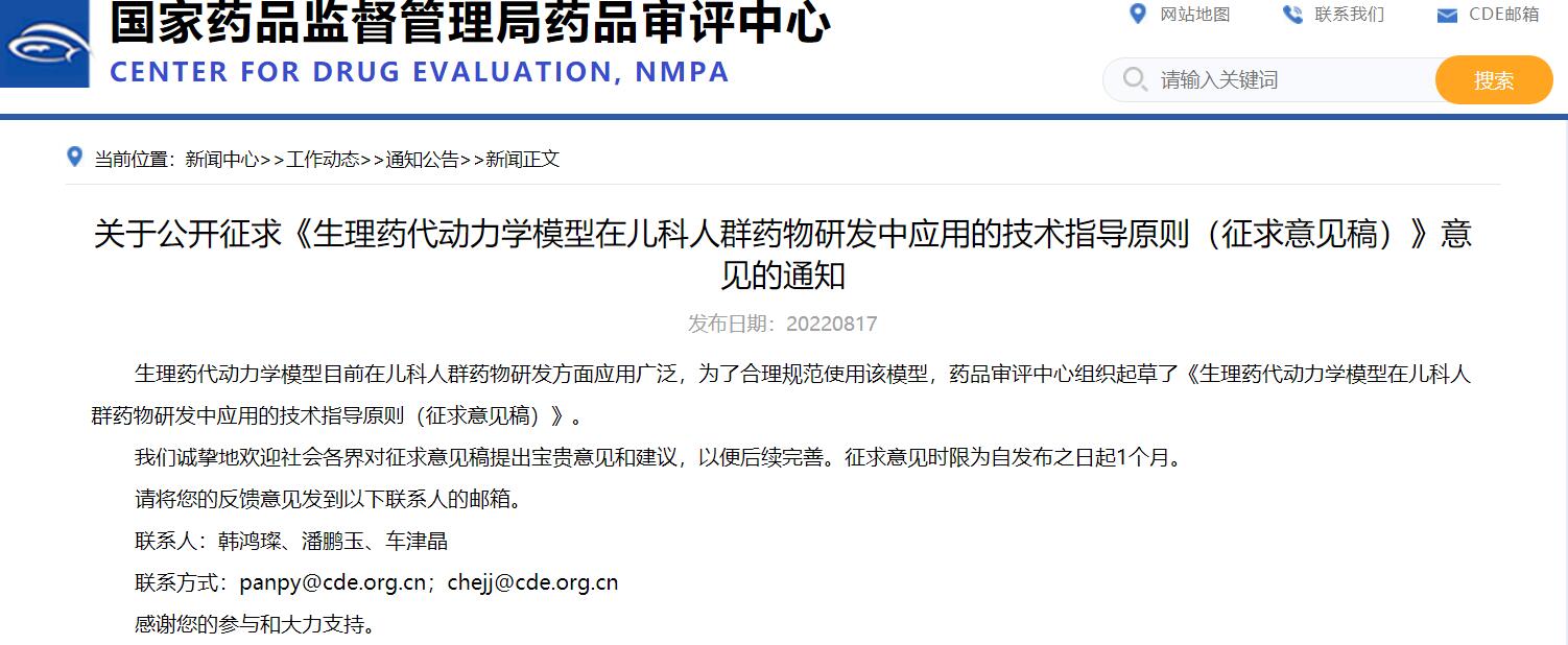 關(guān)于公開征求《生理藥代動(dòng)力學(xué)模型在兒科人群藥物研發(fā)中應(yīng)用的技術(shù)指導(dǎo)原則(征求意見稿)》意見的通知