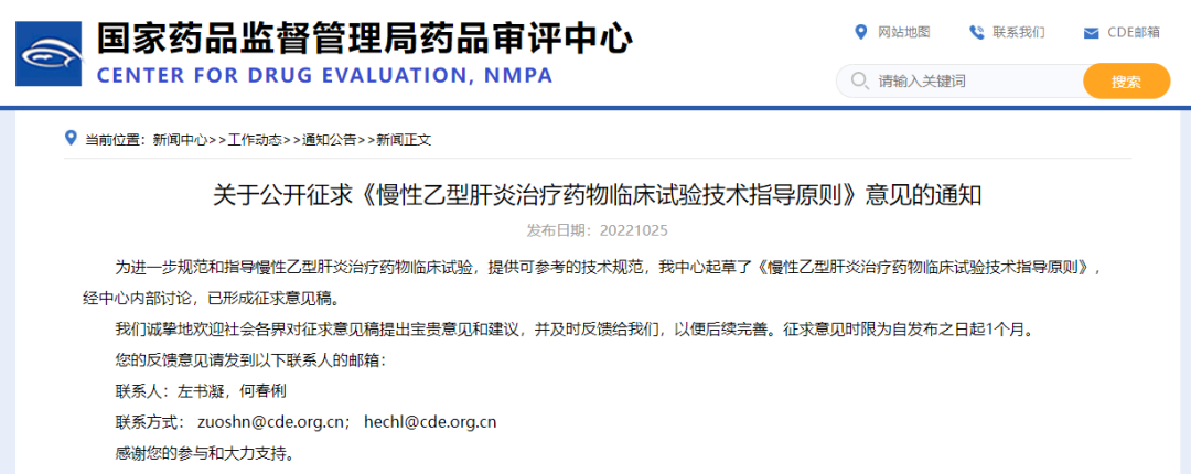 關(guān)于公開征求《慢性乙型肝炎治療藥物臨床試驗(yàn)技術(shù)指導(dǎo)原則》意見的通知