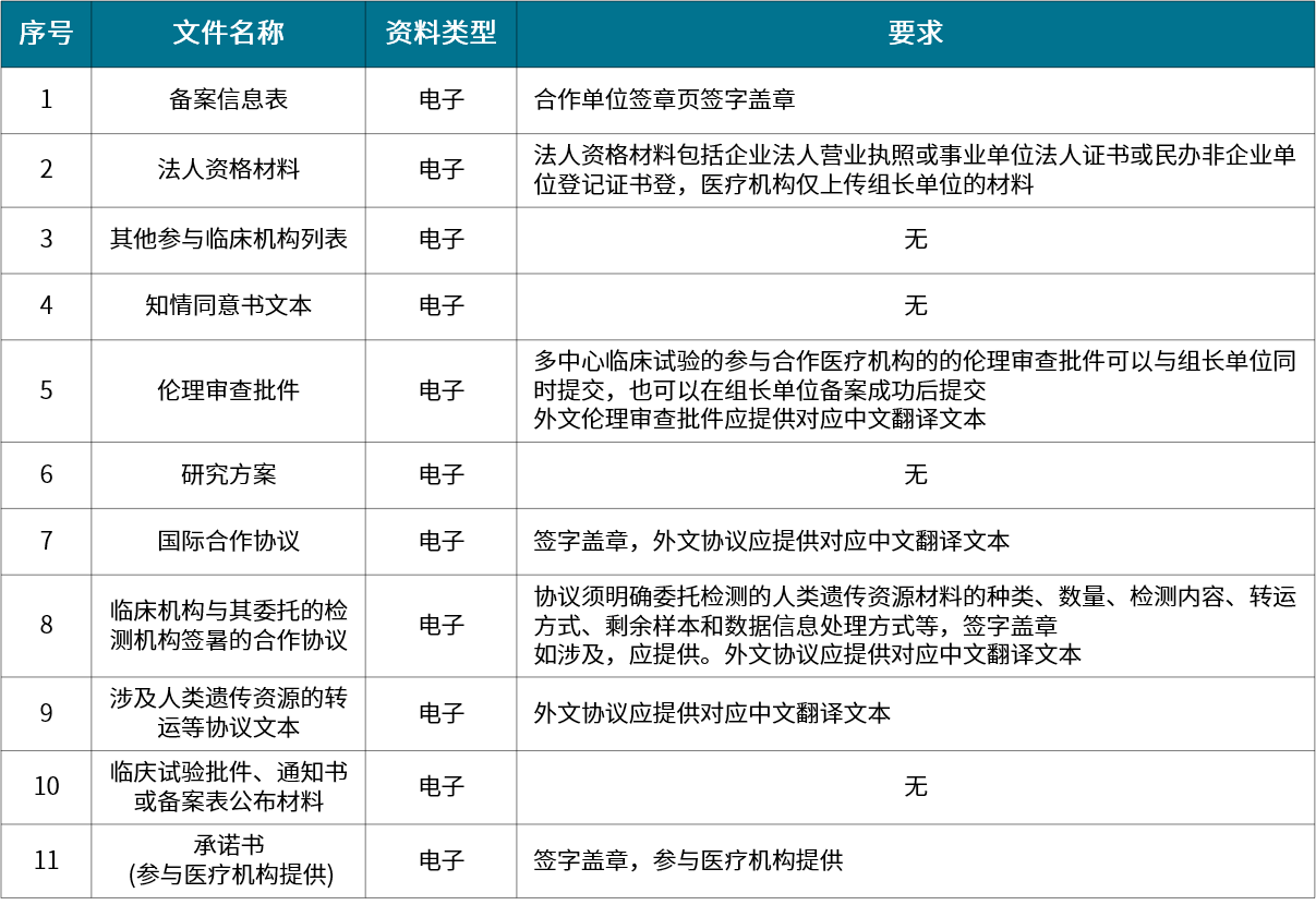 國際合作臨床試驗備案:為獲得相關(guān)藥品和醫(yī)療器械在我國上市許可,在臨床機構(gòu)利用我國人類遺傳資源開展國際合作臨床試驗、不涉及人類遺傳資源材料出境