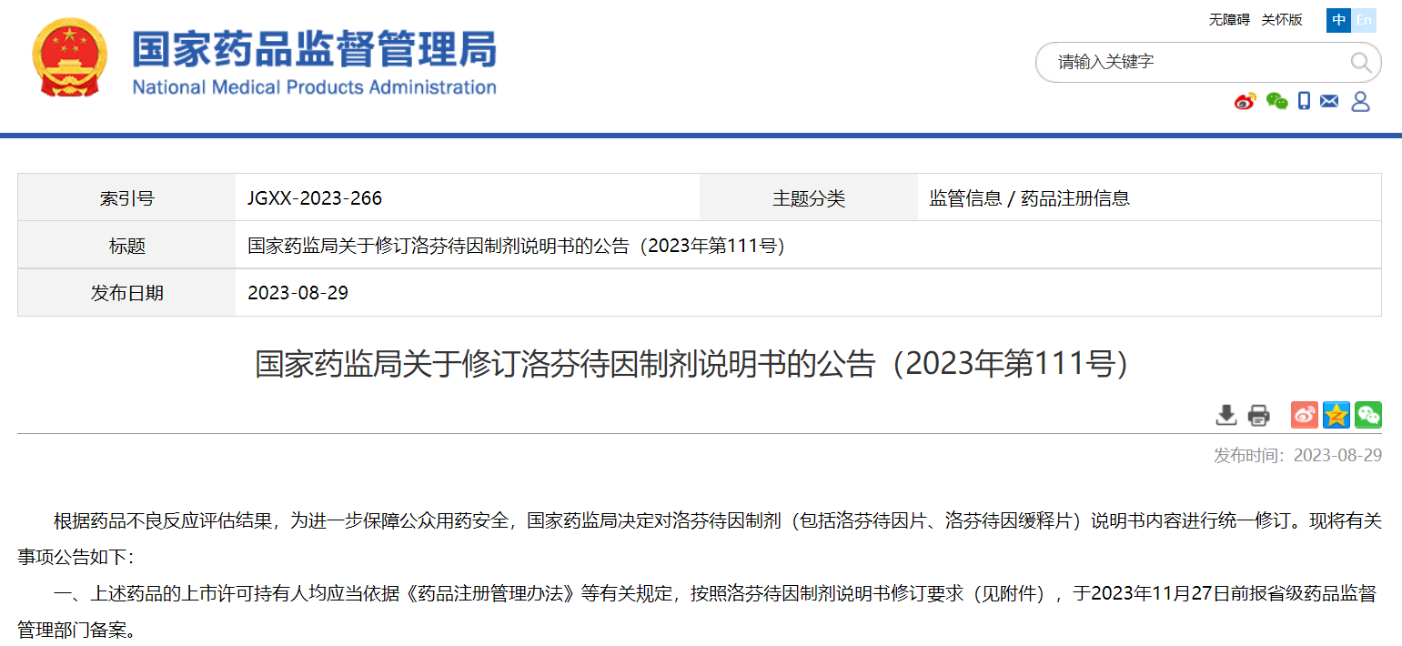 國家藥監(jiān)局關(guān)于修訂洛芬待因制劑說明書的公告(2023年第111號)