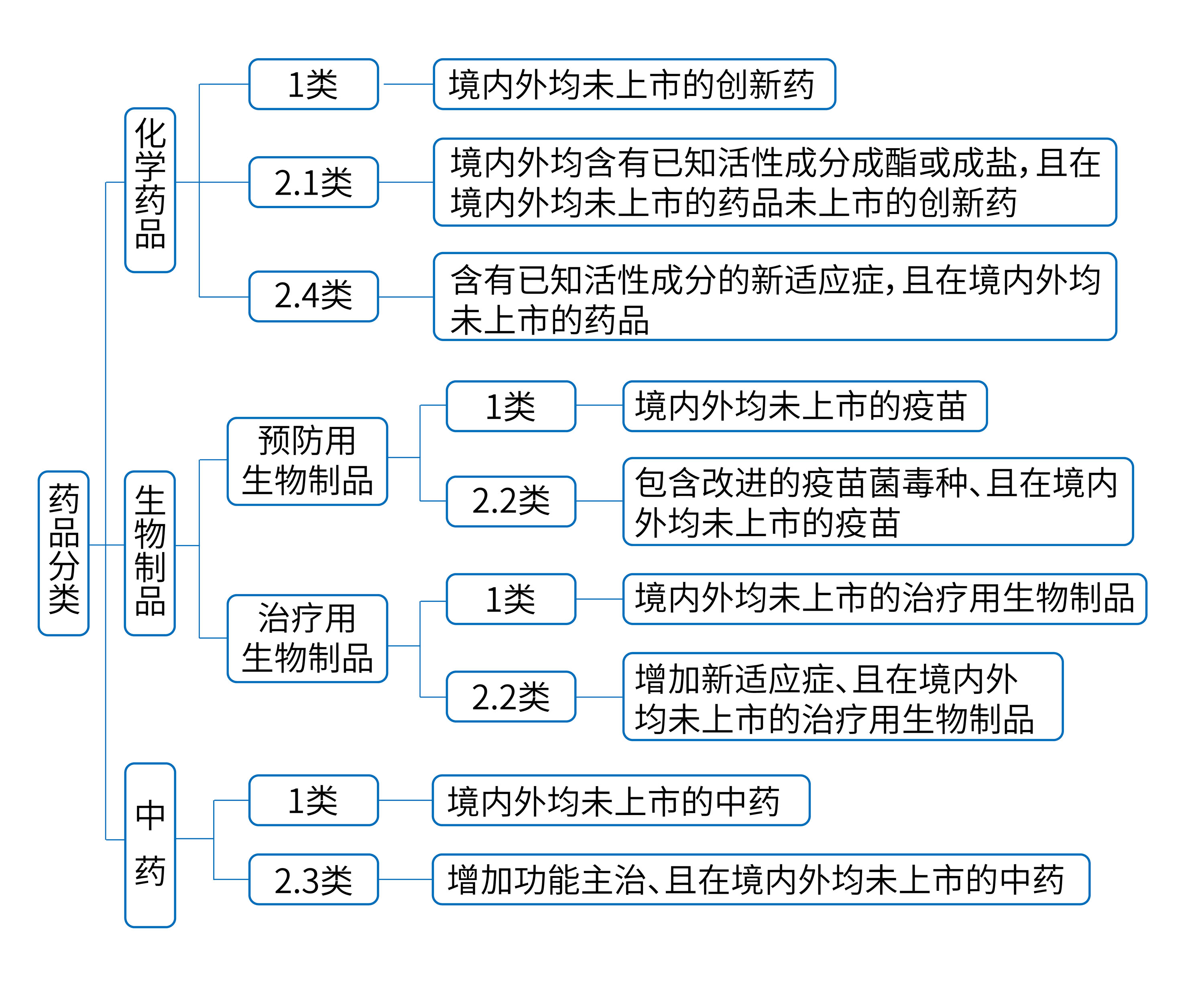 3.4 適用范圍 記載給予藥品專利權(quán)期限補償?shù)膰鴦赵核幤繁O(jiān)督管理部門批準上市的創(chuàng)新藥和符合本章規(guī)定的改良型新藥的定義,絕大概率上可以確定審查指南中所述的“創(chuàng)新藥”就是指藥品注冊分類中的“1類藥”,即相當于“全球新”,這樣實際上就是把化藥2.2類和2.3類、化藥5.1類及生物制品3類中的“中國新”生物藥品排除在藥品專利權(quán)期限補償制度外。