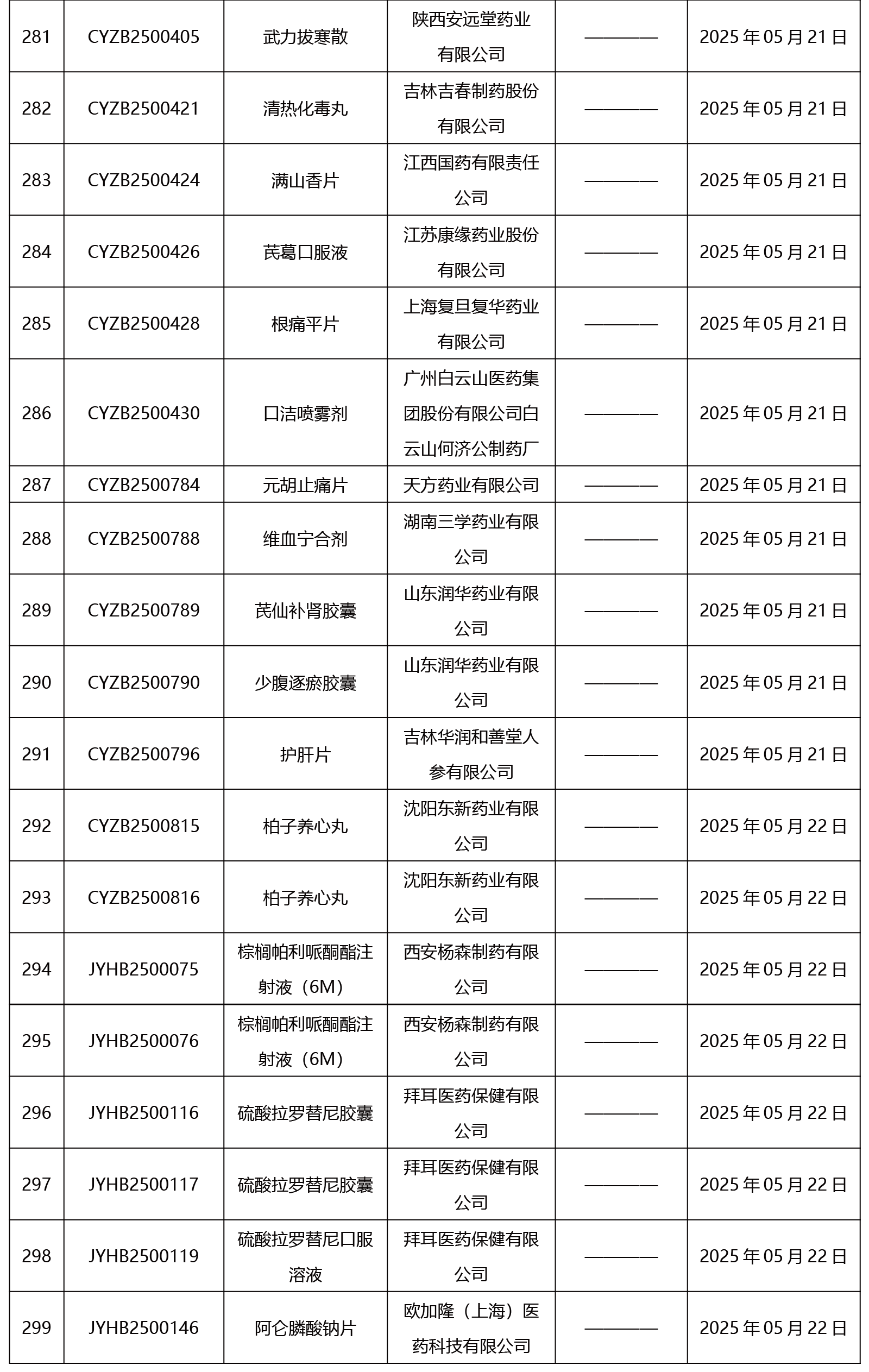 2025年05月26日中藥品種保護受理公示
