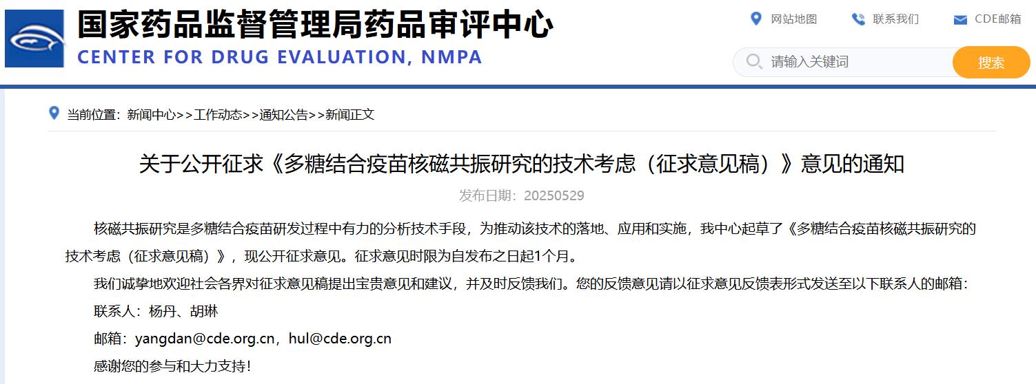 關于公開征求《多糖結合疫苗核磁共振研究的技術考慮(征求意見稿)》意見的通知