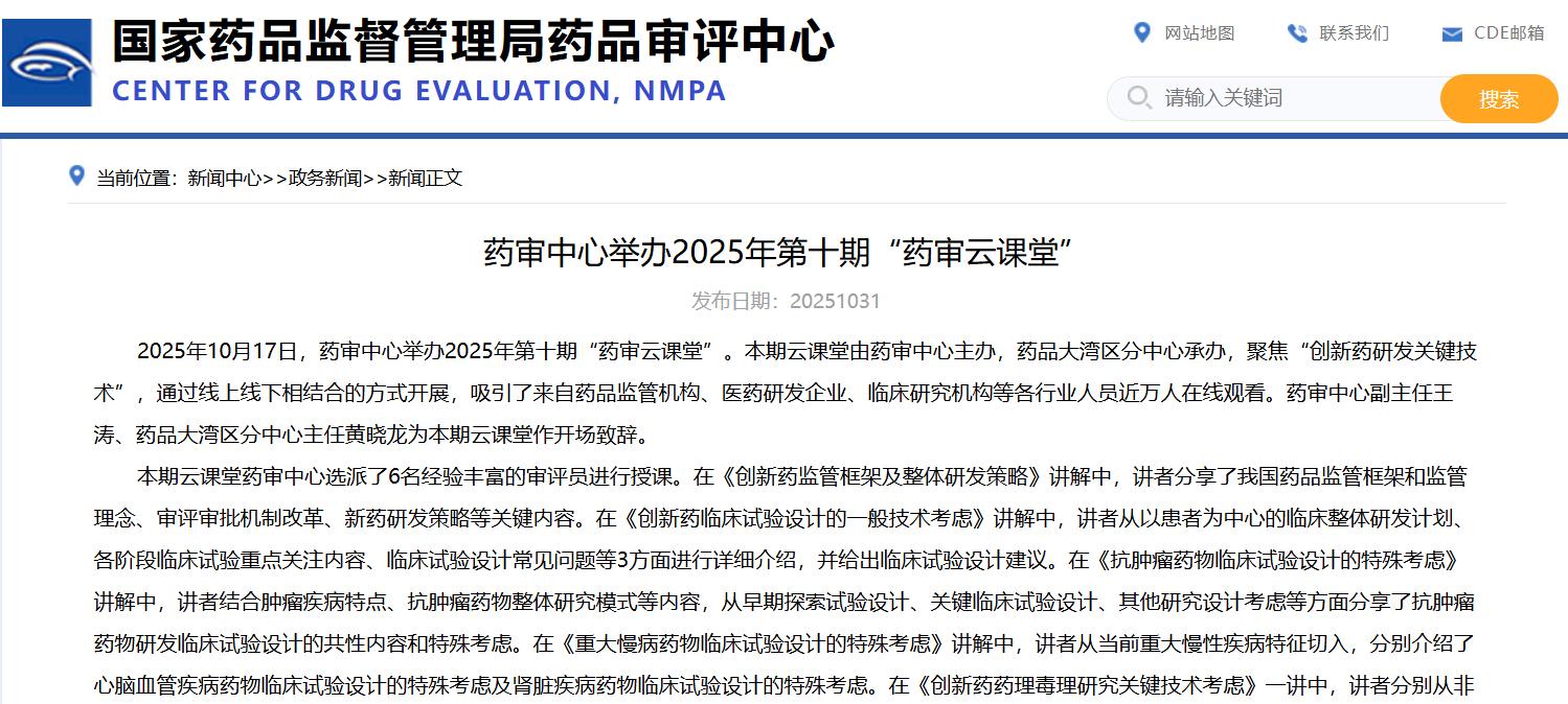 藥審中心舉辦2025年第十期“藥審云課堂”