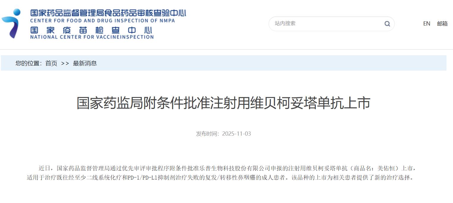 國家藥監(jiān)局附條件批準注射用維貝柯妥塔單抗上市