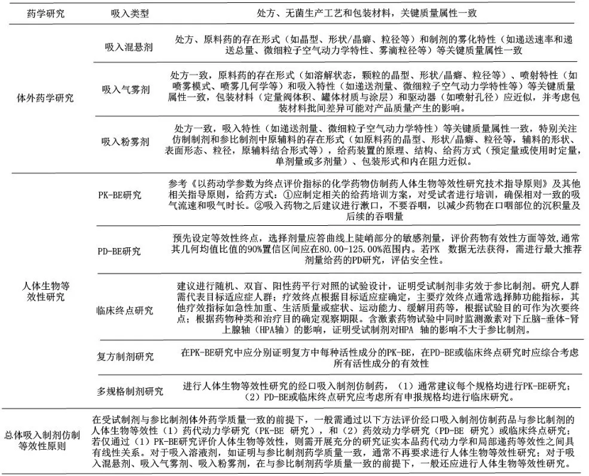 縱觀各國(guó)關(guān)于吸入制劑指導(dǎo)原則及指南要求,全球已基本達(dá)成共識(shí),主要涉及無菌保障、霧化特性質(zhì)量研究和生物等效性研究三個(gè)方面,匯總?cè)缦拢?/p>