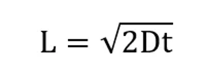 微通道反應(yīng)器有著非常多的“魔力”,要想從機(jī)理上說清楚這件事,需要先介紹一下理論基礎(chǔ)——菲克定律。菲克定律是一個(gè)關(guān)于擴(kuò)散的定律,分子間擴(kuò)散距離和時(shí)間的關(guān)系如下: