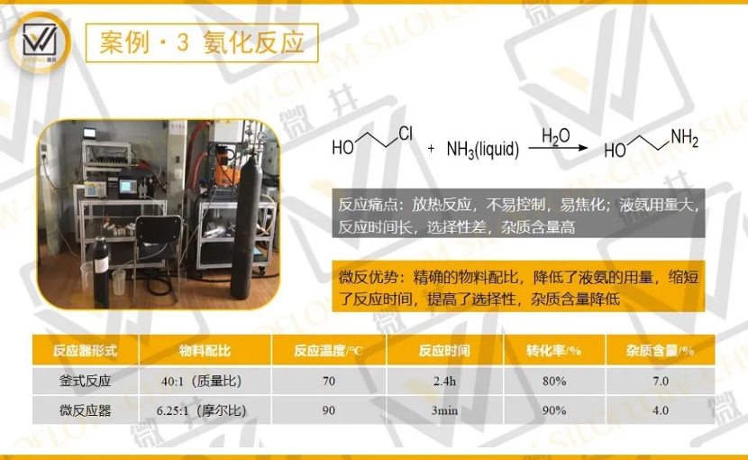 產(chǎn)業(yè)端的應(yīng)用更加急切,整個(gè)行業(yè)涌現(xiàn)出豐富的落地案例。其中比較知名的,如微井科技在去年落地了多個(gè)硝化工業(yè)化項(xiàng)目,單套產(chǎn)能通量最高可以達(dá)到4000噸/年;西安萬德硝酸異辛酯項(xiàng)目,清華大學(xué)和浙江信匯的溴化丁基橡膠項(xiàng)目,東湖高科的乙烯利項(xiàng)目,揚(yáng)農(nóng)的吡蟲啉中間體項(xiàng)目,科邁的橡膠助劑項(xiàng)目等。