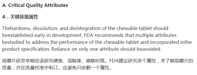FDA發(fā)布的咀嚼片關(guān)鍵質(zhì)量屬性指導(dǎo)原則中提出: