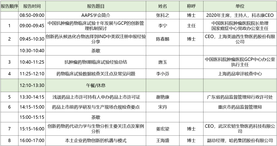 分論壇2:AAPS中國(guó)討論組2020年會(huì)暨小分子創(chuàng)新藥專題論壇