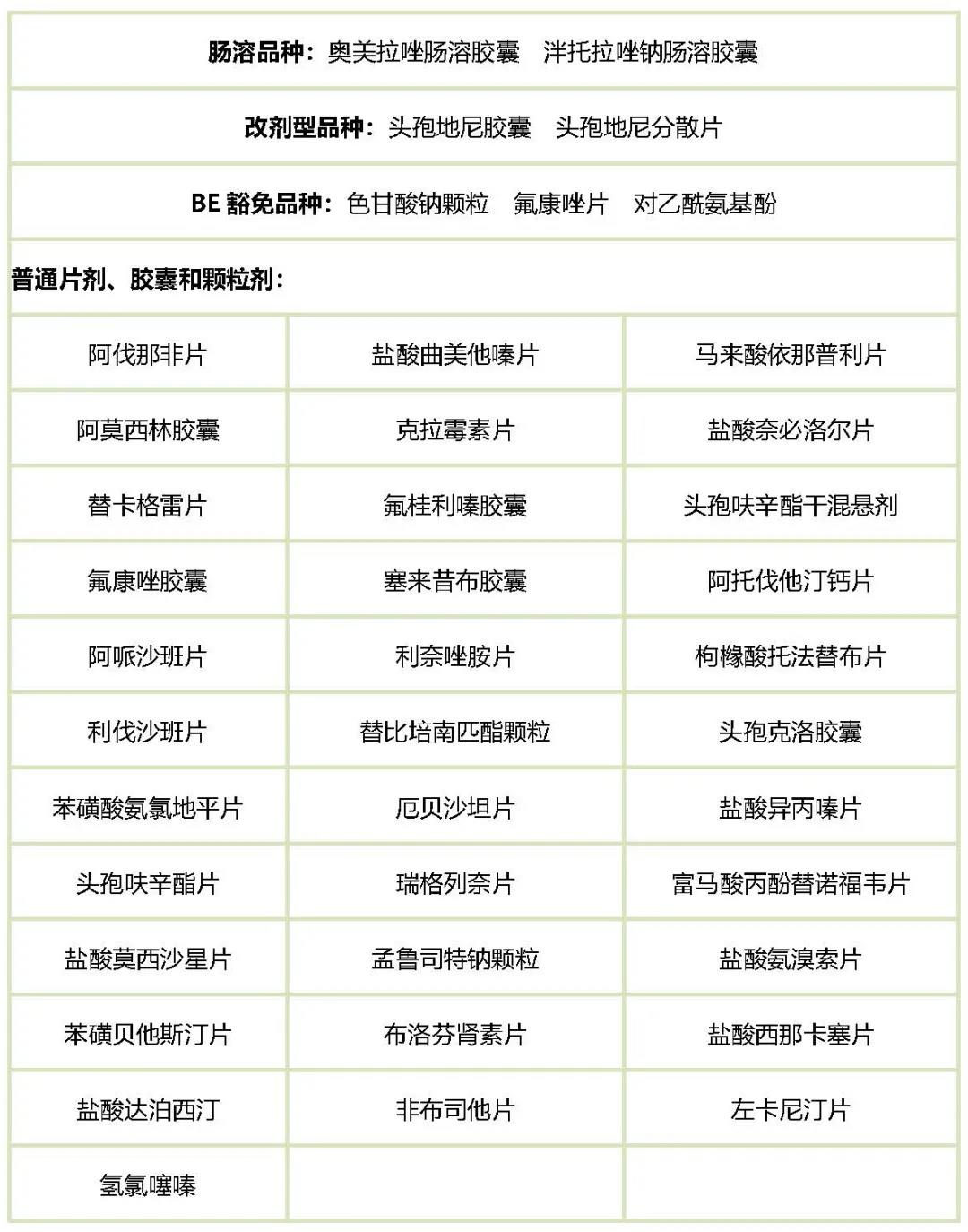 備注:A類項目:普通片劑、膠囊劑