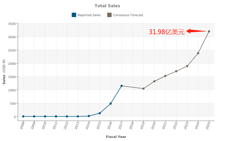 恩格列凈憑借顯著的降糖效果以及心血管獲益,自上市以來,銷售額一路上漲。據(jù)原研公司2019年財報顯示,恩格列凈2019年的全球銷售額達到21.52歐元。據(jù)cortellis預測,恩格列凈2025年的全球銷售額預計將達31.98億美元,有望成為全球最暢銷的SGLT-2抑制劑,同時也是全球第三大暢銷的降糖藥物。