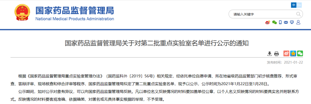 關(guān)于對(duì)第二批重點(diǎn)實(shí)驗(yàn)室名單進(jìn)行公示的通知