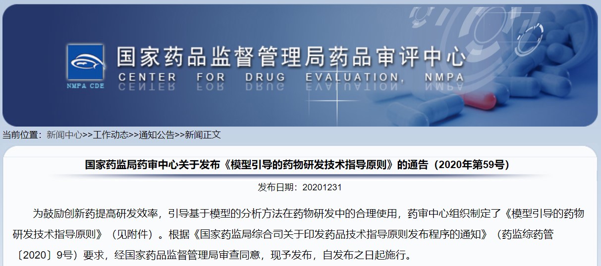 關(guān)于發(fā)布《模型引導(dǎo)的藥物研發(fā)技術(shù)指導(dǎo)原則》的通告(2020年第59號)