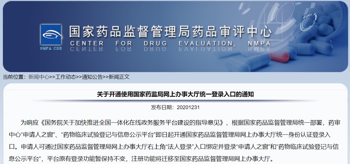 為落實《國務(wù)院辦公廳關(guān)于印發(fā)進一步深化“互聯(lián)網(wǎng)+政務(wù)服務(wù)”推進政務(wù)服務(wù)“一網(wǎng)、一門、一次”改革實施方案的通知》(國辦發(fā)〔2018〕45號)和《國務(wù)院辦公廳關(guān)于加快推進政務(wù)服務(wù)“跨省通辦”的指導(dǎo)意見》(國辦發(fā)〔2020〕35號)有關(guān)要求,國家藥監(jiān)局已開通藥品注冊事項網(wǎng)上申報功能,并于2021年1月1日正式上線運行。