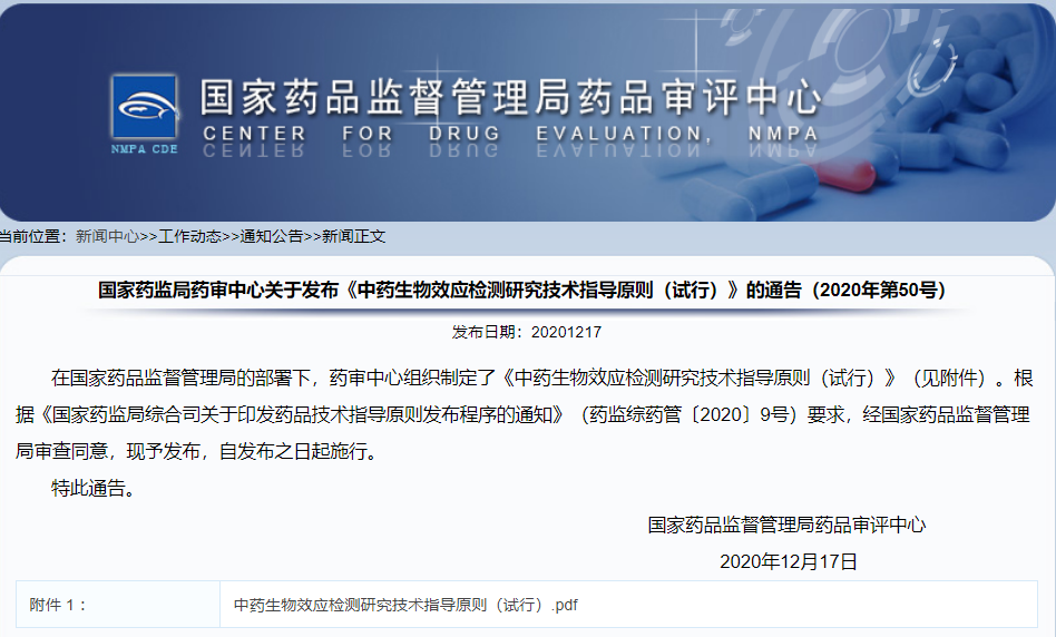 關(guān)于發(fā)布《中藥生物效應(yīng)檢測研究技術(shù)指導(dǎo)原則(試行)》的通告(2020年第50號)