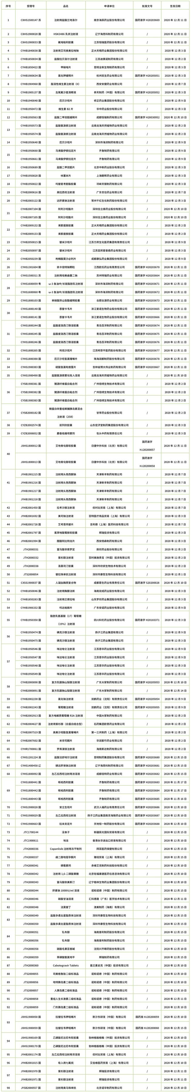 本周共計98個品種獲批取得藥品批準證明文件,其中一致性評價品種17個,注射劑品種7個。