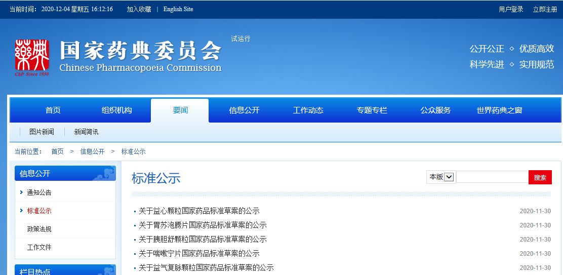 本周益心顆粒、胃蘇泡騰片、胰膽舒顆粒、咳嗽寧片、益氣復(fù)脈顆粒國(guó)家藥品標(biāo)準(zhǔn)草案公示。