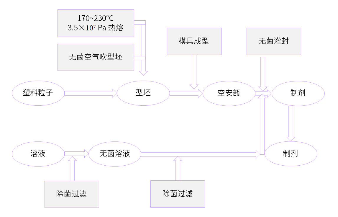 我想生產(chǎn)廠家及監(jiān)管機構(gòu)主要從用藥安全性、劑型給藥特性及資源集約等方面考慮。下面我們簡單介紹一下BFS生產(chǎn)線的技術(shù)概況。