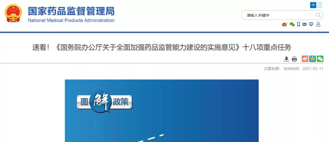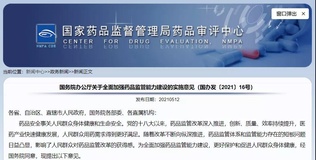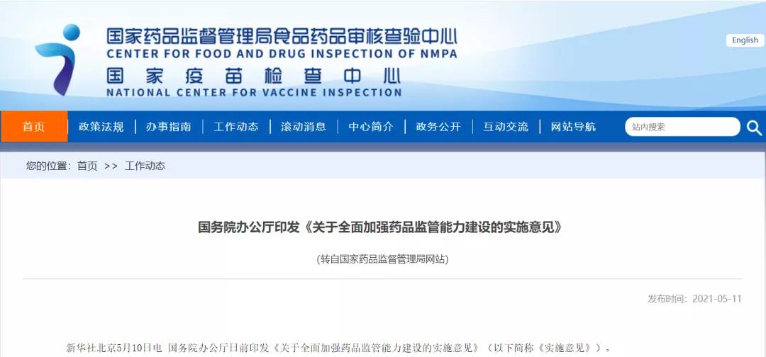國務(wù)院辦公廳關(guān)于全面加強(qiáng)藥品監(jiān)管能力建設(shè)的實(shí)施意見(國辦發(fā)〔2021〕16號(hào))