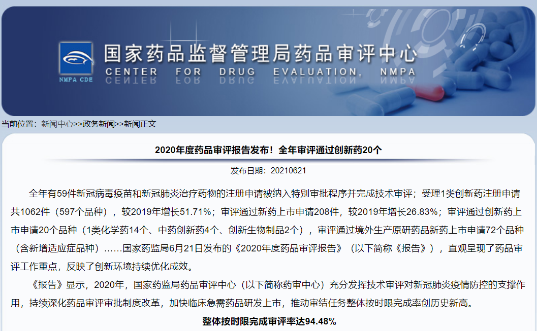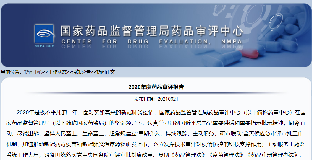 2020年度藥品審評報告發(fā)布!全年審評通過創(chuàng)新藥20個