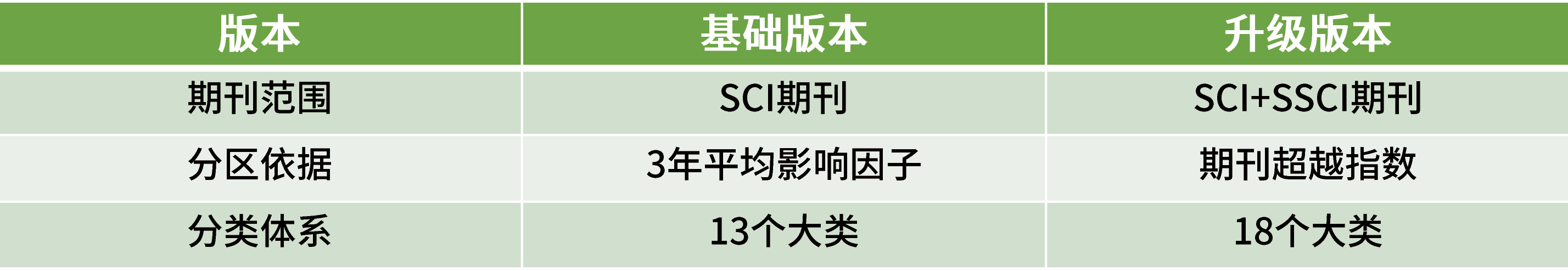 最流行是的中科院的分區(qū)。從2020年,分區(qū)依據(jù)由原來(lái)的影響因子換成超越指數(shù),這種分區(qū)方法將經(jīng)歷2019-2021三年的過(guò)渡期,由原來(lái)的13大類變成了18大類,如下圖所示。