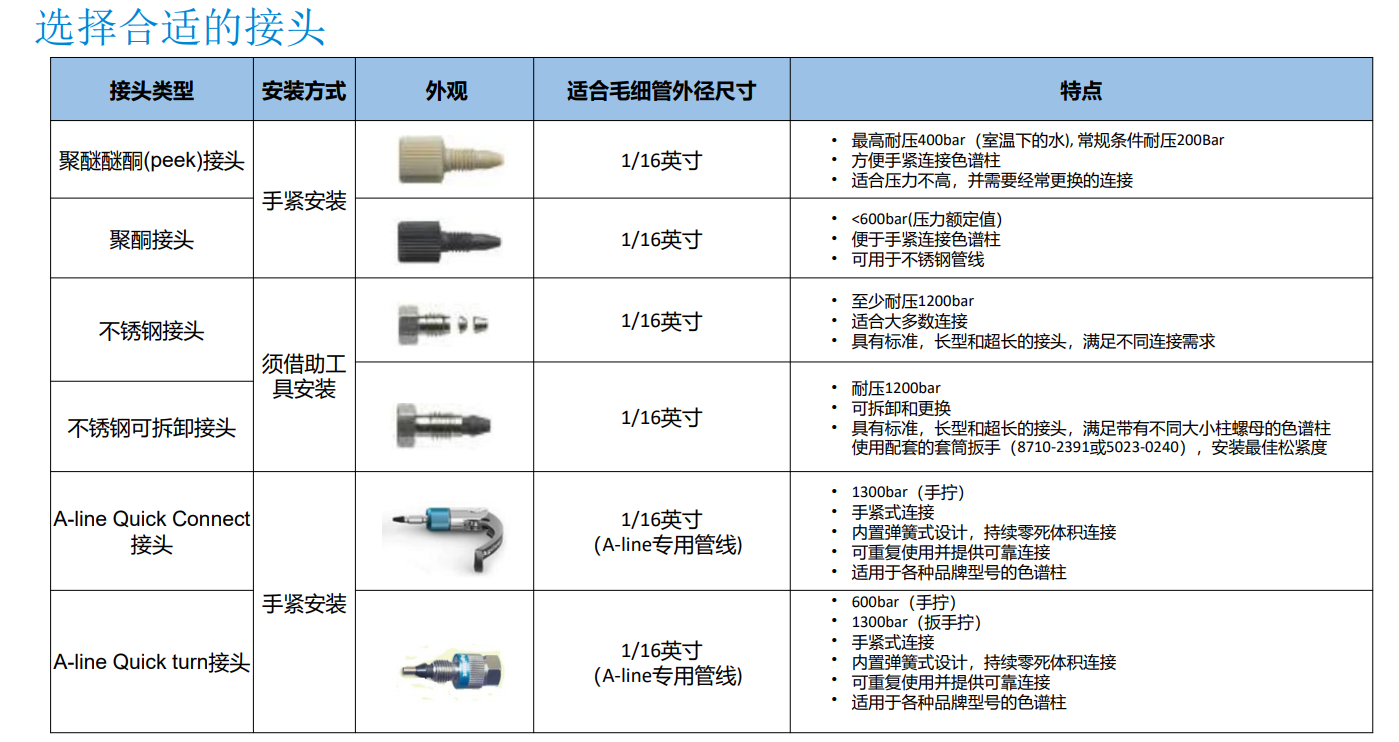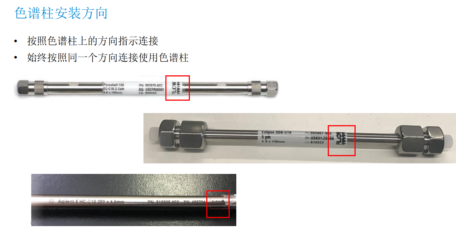 色譜柱安裝應(yīng)按照同一個(gè)方向連接使用,且需要按照色譜柱上的方向指示連接,盡量避免色譜柱反向連接!
