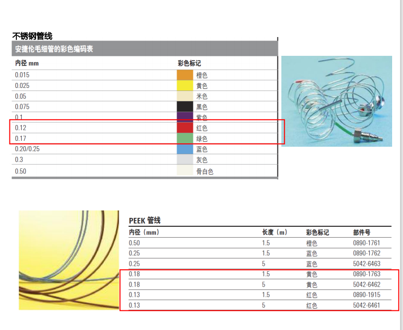 分析型液相系統(tǒng)最常用的規(guī)格是0.12和0.17mm內(nèi)徑的管線。更換管線時(shí)首先要確認(rèn)當(dāng)前管線的規(guī)格、并更換相同內(nèi)徑和長(zhǎng)度的管線,否則會(huì)造成更換前后結(jié)果的不一致,因?yàn)楣芫€體積會(huì)影響系統(tǒng)柱外體積,從而影響峰形和保留時(shí)間。