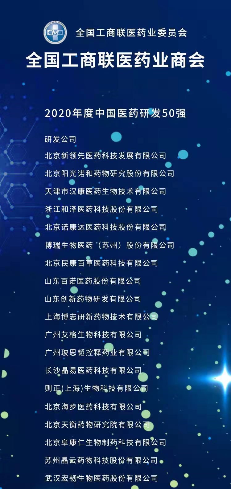 “2020年度中國醫(yī)藥行業(yè)成長50強”