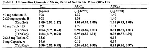 筆者認(rèn)為FDA綜述對于臨床研究公布的更為詳細(xì),報告中會匯總原研開發(fā)過程中所進行的各種臨床試驗,包括不同劑型的藥動學(xué)研究;處方變化的生物等效性研究;食物對于藥物吸收的影響;不同人群吸收的影響等,下面以托莫西汀膠囊為例,解讀相關(guān)文獻。