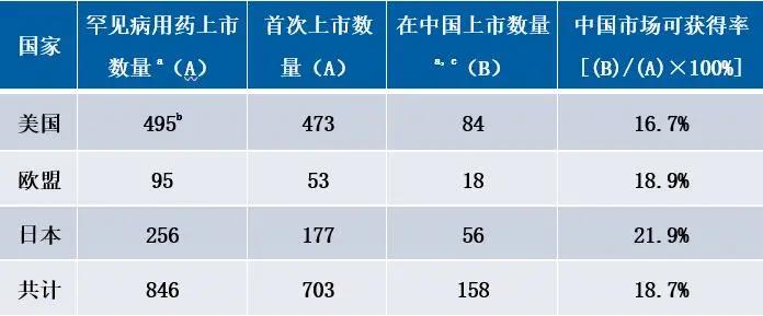備注:a指罕見(jiàn)病用藥的種類;b包含撤回的罕見(jiàn)病用藥;c截止2018年9月30日。