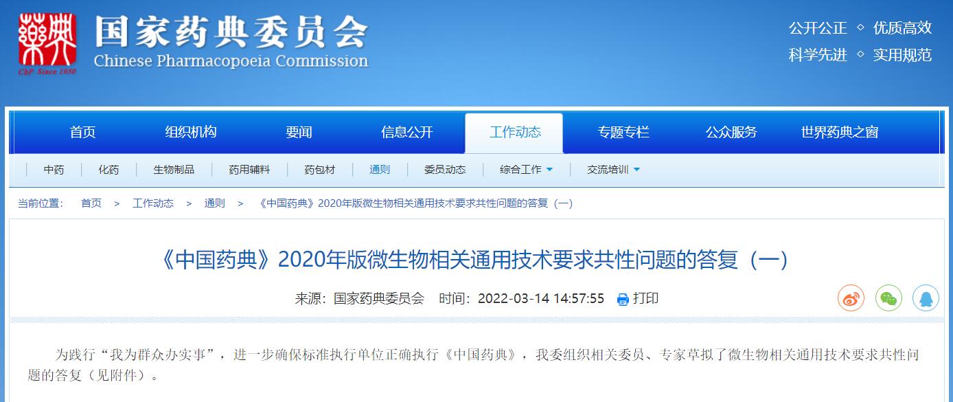 《中國(guó)藥典》2020年版微生物相關(guān)通用技術(shù)要求共性問題的答復(fù)(一)
