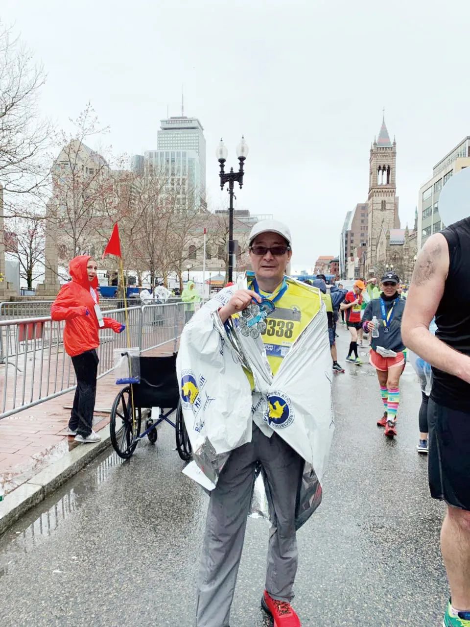 圖:醫(yī)藥天團(tuán)在終點(diǎn)淋雨沖線