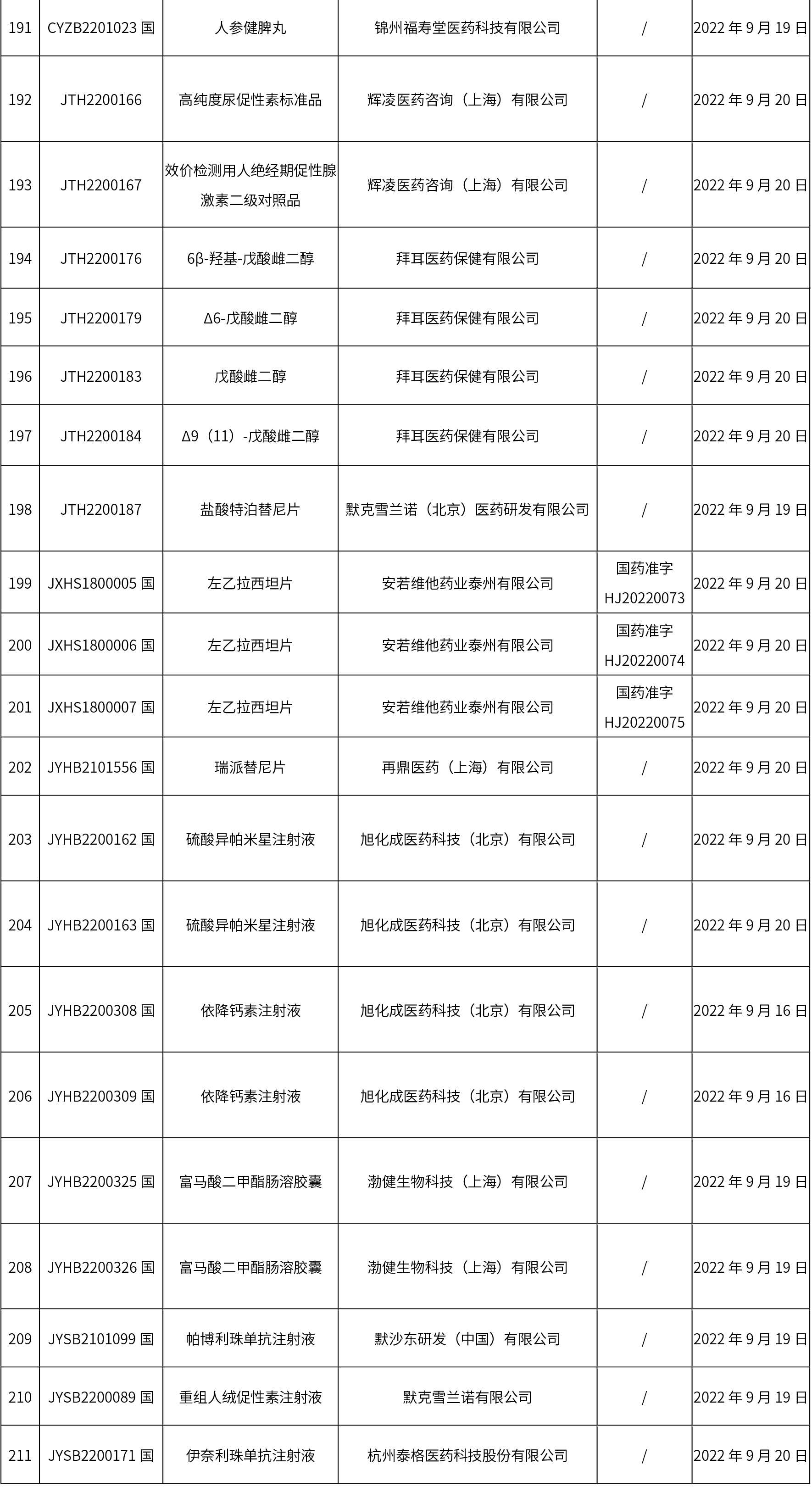 1. 本周(截止09.30中午12:15)共發(fā)布了211個(gè)品規(guī)的藥品批準(zhǔn)證明文件待領(lǐng)取信息,其中一致性評價(jià)27個(gè),注射劑51個(gè)(其中1個(gè)為滅菌注射用水)。