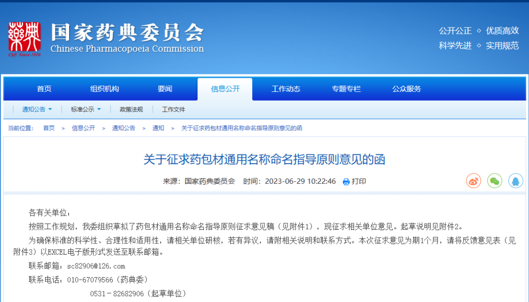 關(guān)于征求藥包材通用名稱命名指導(dǎo)原則意見的函