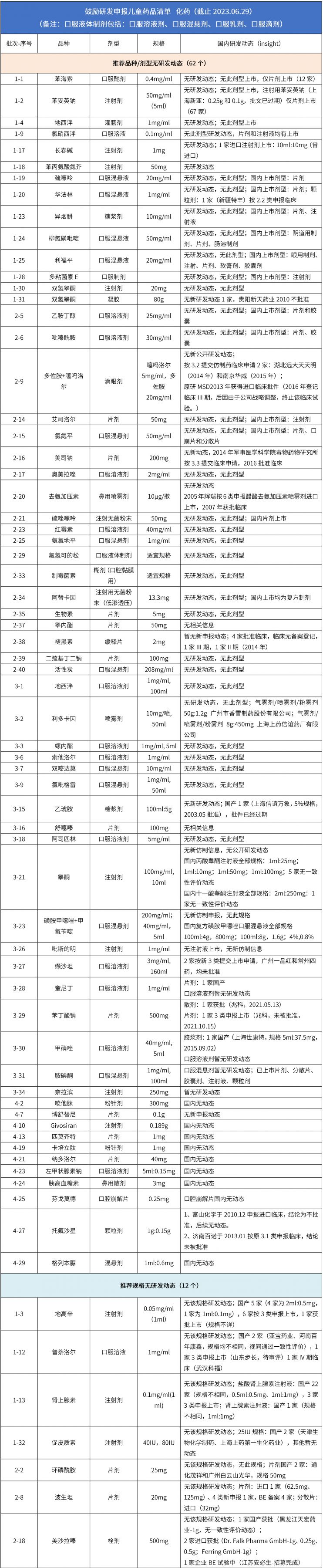 針對(duì)兒童優(yōu)勢(shì)劑型,新領(lǐng)先醫(yī)藥在口服溶液劑、顆粒劑、散劑、混懸劑、干糖漿、口溶膜、口崩片、分散片等劑型方面均有布局,涉及精神-神經(jīng)系統(tǒng)、抗腫瘤-免疫、消化系統(tǒng)、心血管系統(tǒng)、血液系統(tǒng)等多個(gè)領(lǐng)域,助力國內(nèi)兒童企業(yè)產(chǎn)品開發(fā)及選擇,以下為新領(lǐng)先醫(yī)藥部分研發(fā)產(chǎn)品清單。