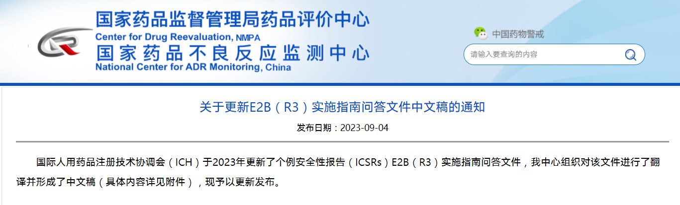關(guān)于更新E2B(R3)實(shí)施指南問答文件中文稿的通知