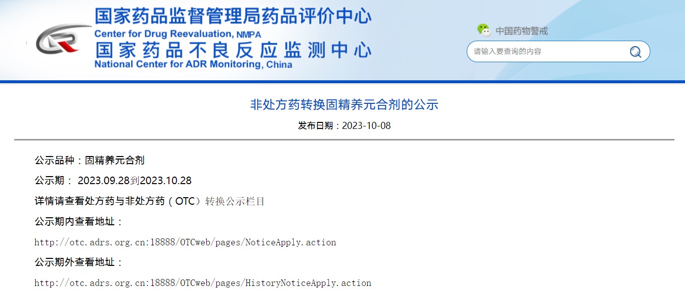 非處方藥轉(zhuǎn)換固精養(yǎng)元合劑的公示