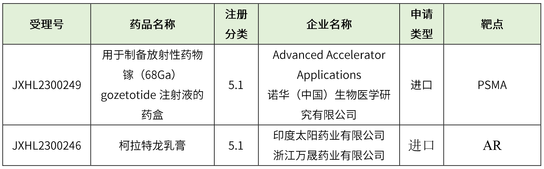 ③ 化藥5.1類進(jìn)口2個(用于制備放射性藥物鎵(68Ga)gozetotide注射液的藥盒、柯拉特龍乳膏),藥物詳細(xì)信息見下表。