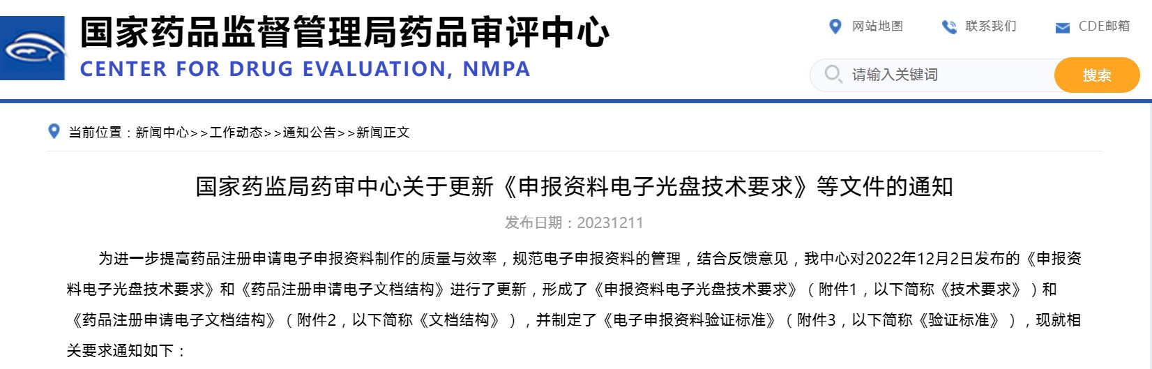 國家藥監(jiān)局藥審中心關(guān)于更新《申報資料電子光盤技術(shù)要求》等文件的通知