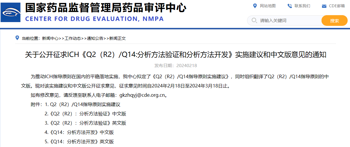 關(guān)于公開(kāi)征求ICH《Q2(R2)/Q14:分析方法驗(yàn)證和分析方法開(kāi)發(fā)》實(shí)施建議和中文版意見(jiàn)的通知