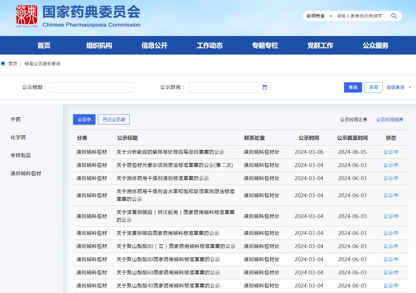 本周藥典委發(fā)布7種藥用輔料標(biāo)準(zhǔn)草案,1種指導(dǎo)原則草案,2種測(cè)定法標(biāo)準(zhǔn)草案等公示。