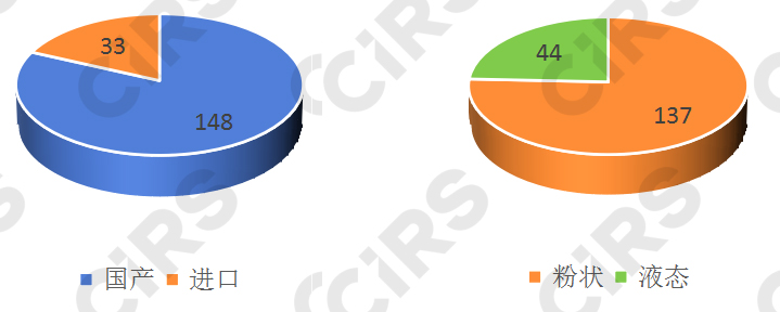 截至2024年4月1日,共計181款特醫(yī)食品注冊獲批,國產(chǎn)148款,進(jìn)口33款,國產(chǎn)產(chǎn)品注冊數(shù)量已遠(yuǎn)超進(jìn)口產(chǎn)品。在已批準(zhǔn)的181款產(chǎn)品中,粉狀產(chǎn)品居多,有137款產(chǎn)品的劑型為粉狀,其余44款為液態(tài)產(chǎn)品。