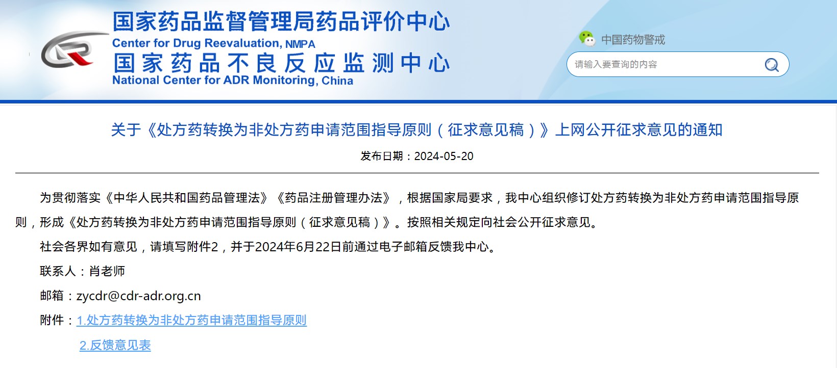 關(guān)于《處方藥轉(zhuǎn)換為非處方藥申請(qǐng)范圍指導(dǎo)原則(征求意見(jiàn)稿)》上網(wǎng)公開(kāi)征求意見(jiàn)的通知