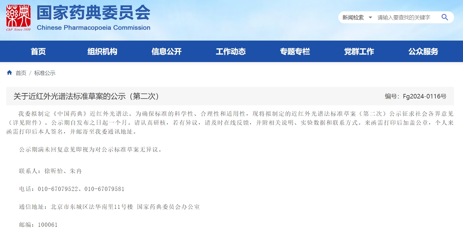關(guān)于近紅外光譜法標(biāo)準(zhǔn)草案的公示(第二次)