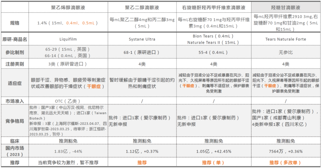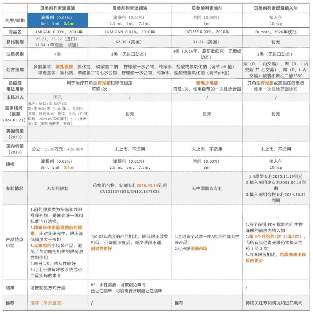 建議開(kāi)發(fā)單劑量裝0.03%滴眼液、改善安全性的0.01%滴眼液、醫(yī)美涂劑,持續(xù)關(guān)注植入劑進(jìn)口動(dòng)向和專利情況。