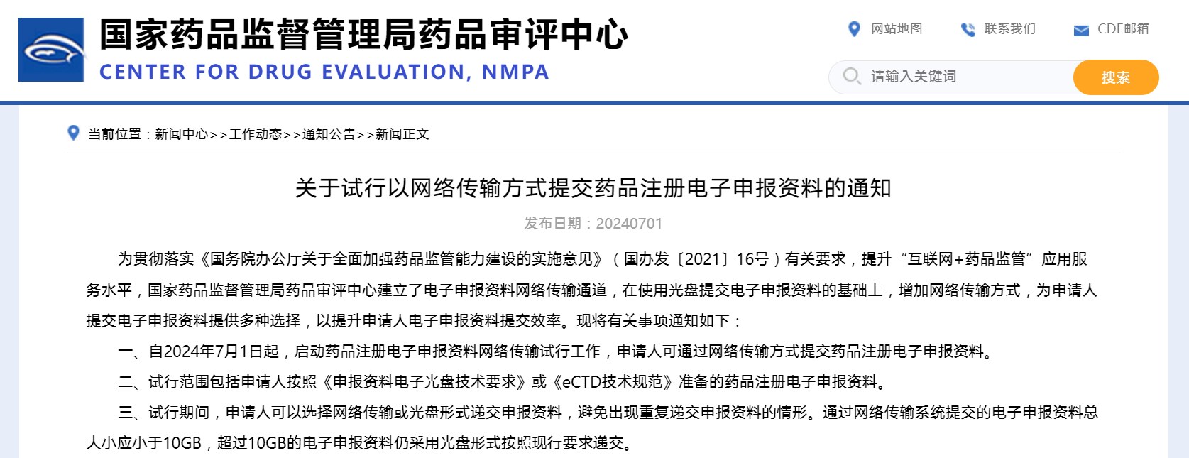 關(guān)于試行以網(wǎng)絡(luò)傳輸方式提交藥品注冊電子申報(bào)資料的通知